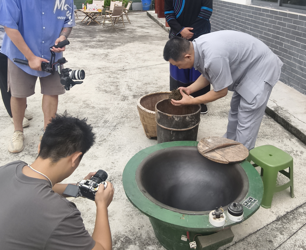 追着“彝族红茶”的四季,我们从茶山拍到茶坊。春茶采摘时,跟着茶农踩过晨露沾湿的山路;炒茶环节,在高温茶锅旁记录茶叶翻滚的瞬间,汗水浸湿衣衫也不敢挪开镜头,就怕错过手工制茶里的每一份讲究。